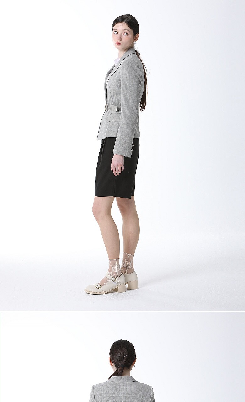 1. 제품 소재 (섬유의 조성 또는 혼용률을 백분율로 표시, 기능성인 경우 성적서 또는 허가서) | [겉감] 폴리에스터 62%, 레이온 35%, 폴리우레탄 3% [안감1] 폴리에스터 100% [안감2] 폴리에스터 100% |