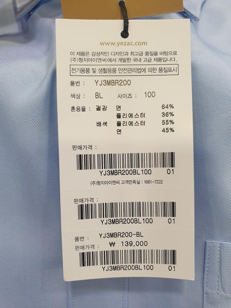 [예작셔츠] 반소매 면혼방 블루 카라 스냅버튼 일반핏셔츠 YJ3 MBR 200 BL