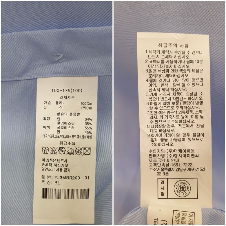 | 6. 세탁방법 및 취급시 주의사항 | 상품상세참조 |
