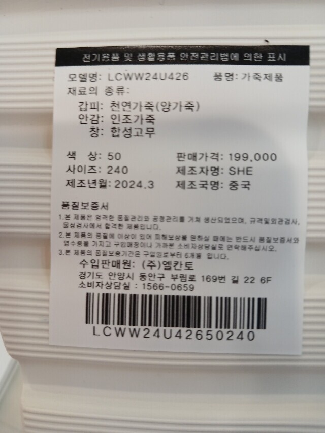 | 1. 제품 소재 (운동화인 경우에는 겉감, 안감을 구분하여 표시) | 상품상세참조 |