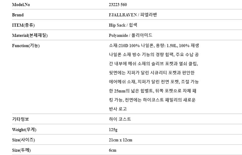피엘라벤 FJALLRAVEN 23223 560 하이코스트 힙 팩 Navy 공용 힙색 가방
