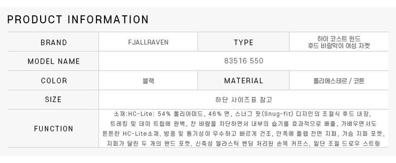 피엘라벤 FJALLRAVEN 83516 550 하이 코스트 윈드 여성 자켓