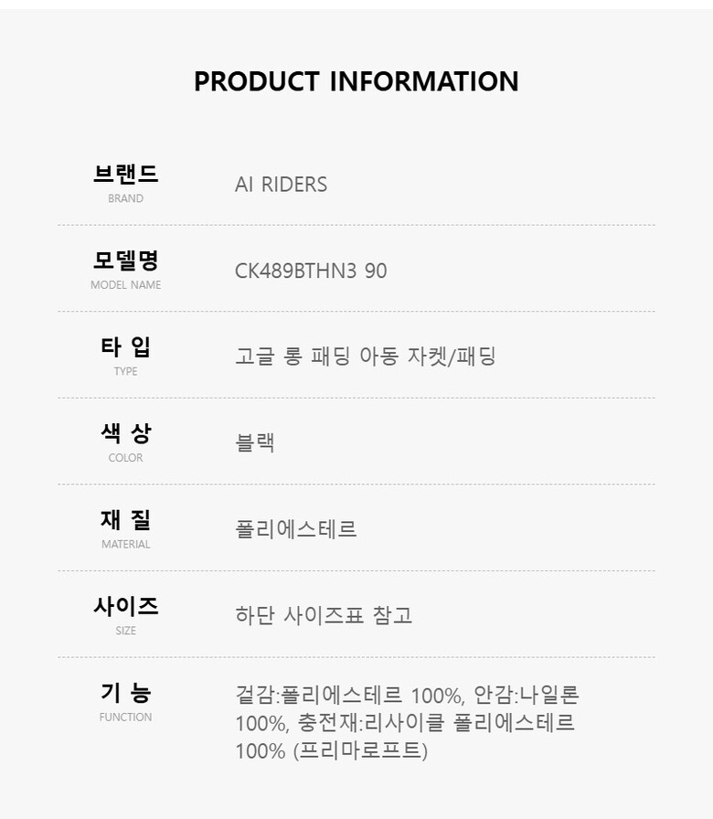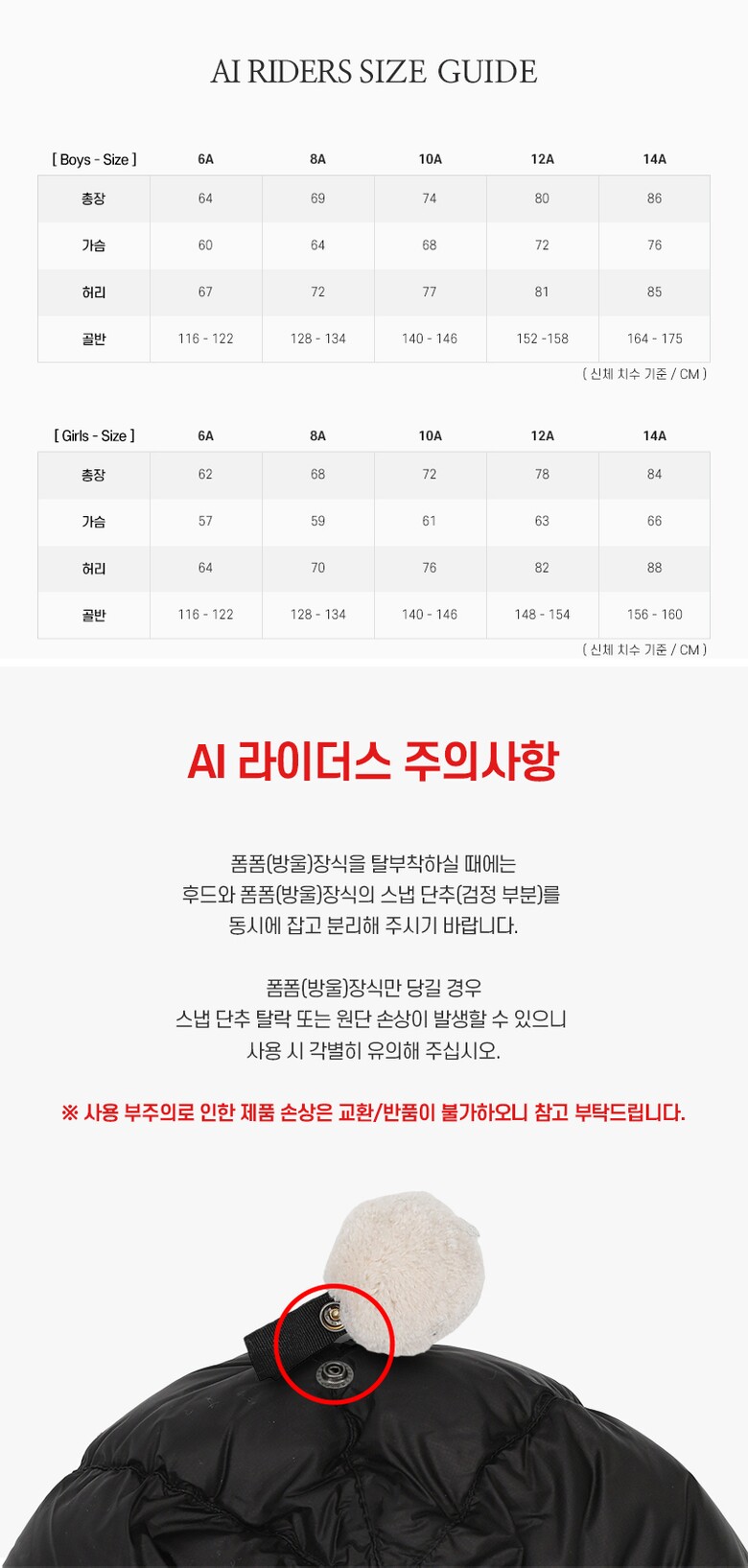 AI라이더스 AI RIDERS CK489BTHN3 90 더블 후드 고글 주니어 패딩