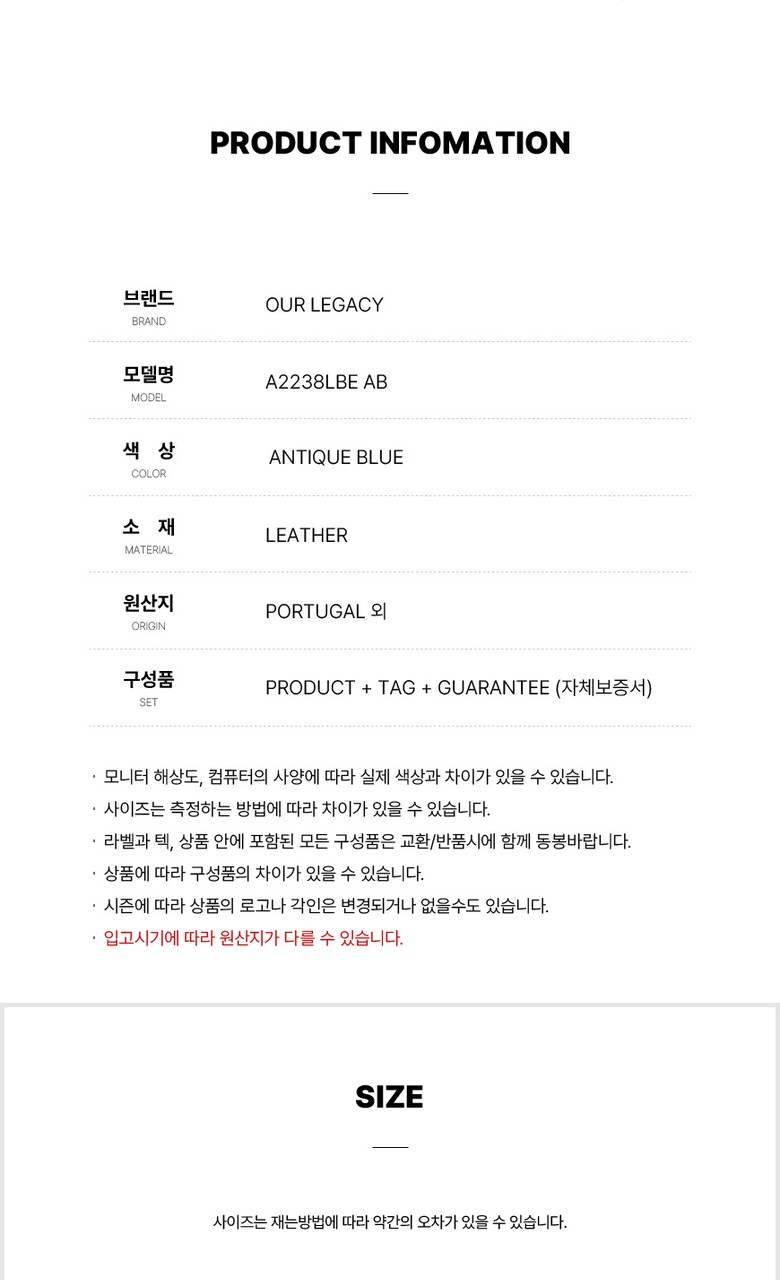• 아울렛 상품 특성상 사이즈 등의 교환은 불가능하며, 반품 후 재주문 하셔야 합니다.