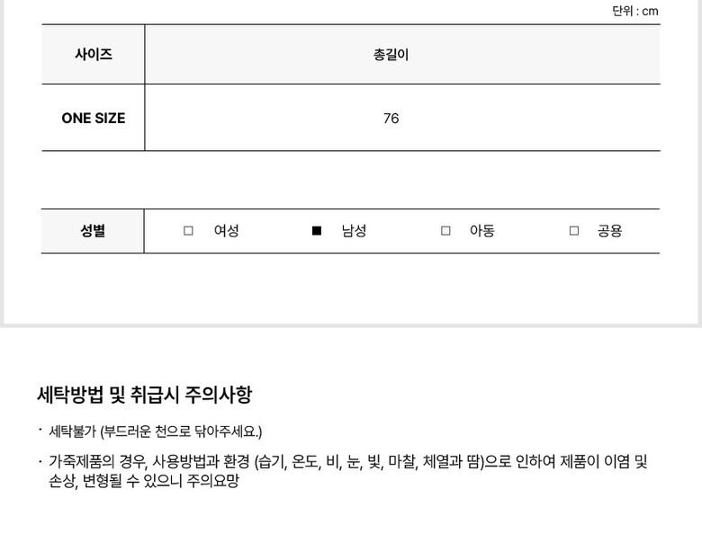 • 처음 배송된 상품상태와 다를 경우(세탁/착용 후 외출하신 경우) 반품이 불가합니다.