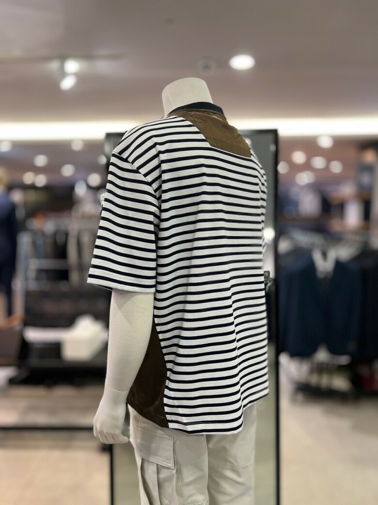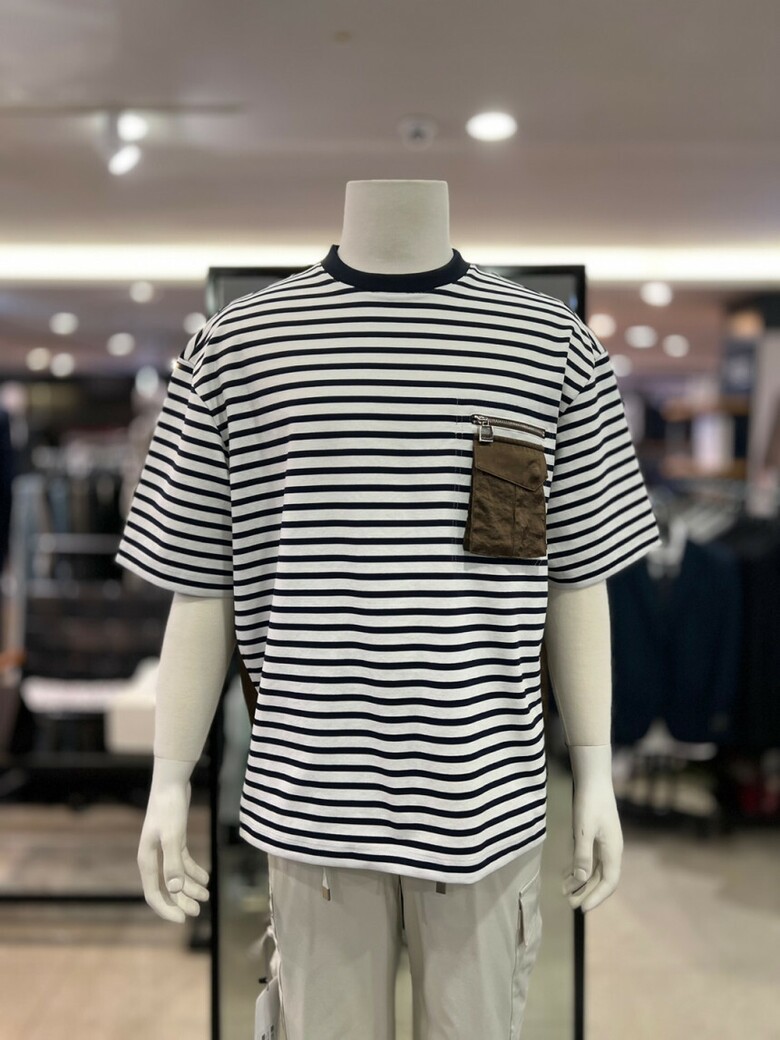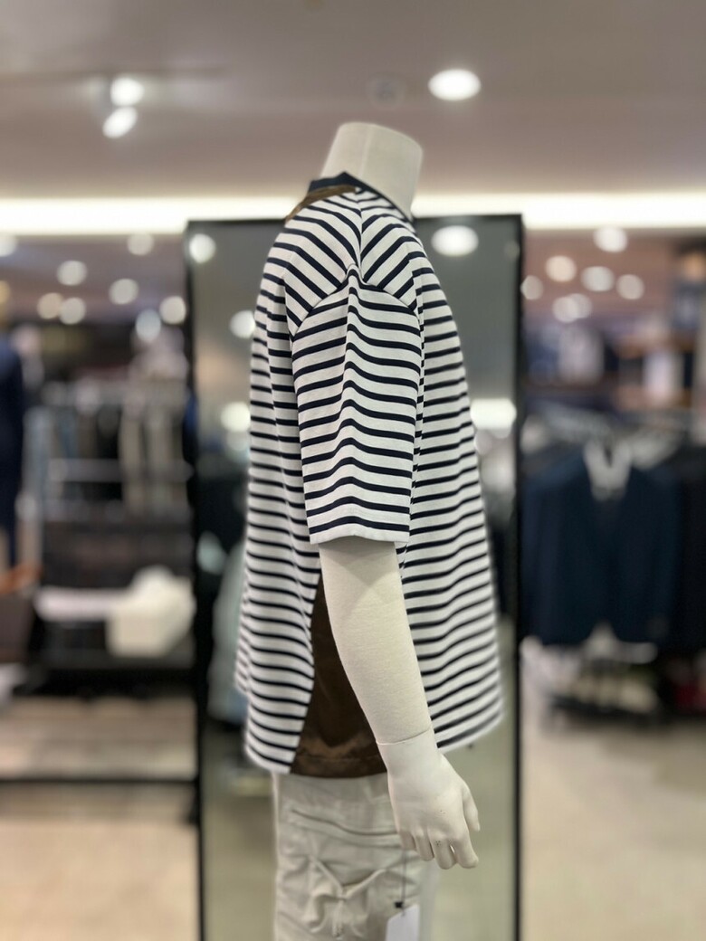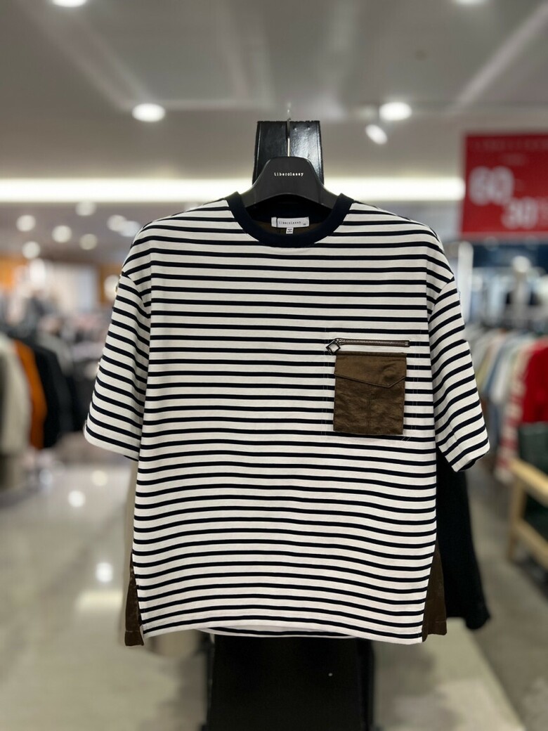 리버클래시 다크네이비 스트라이프 우븐 믹스 오버핏 반팔티셔츠 LKS41327