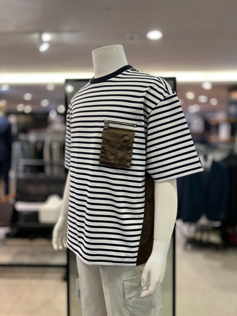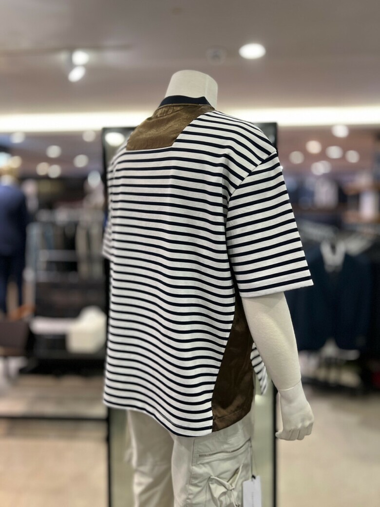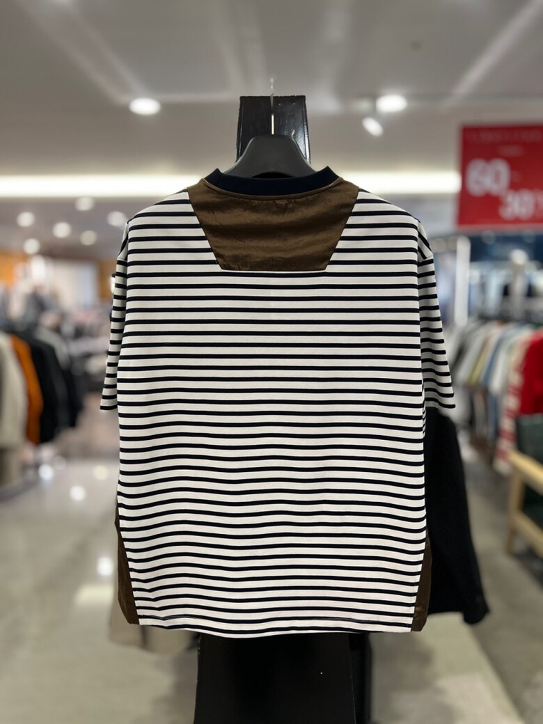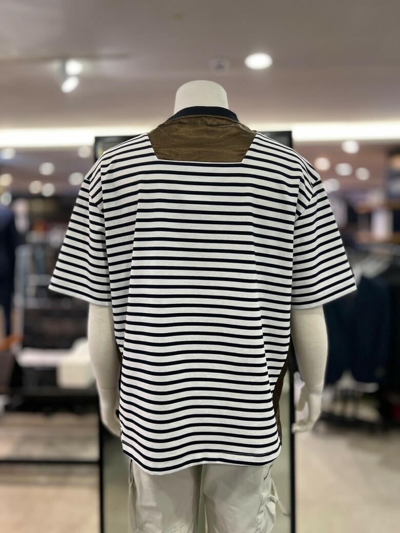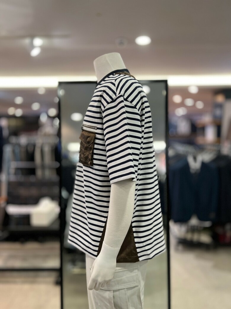 리버클래시 다크네이비 스트라이프 우븐 믹스 오버핏 반팔티셔츠 LKS41327