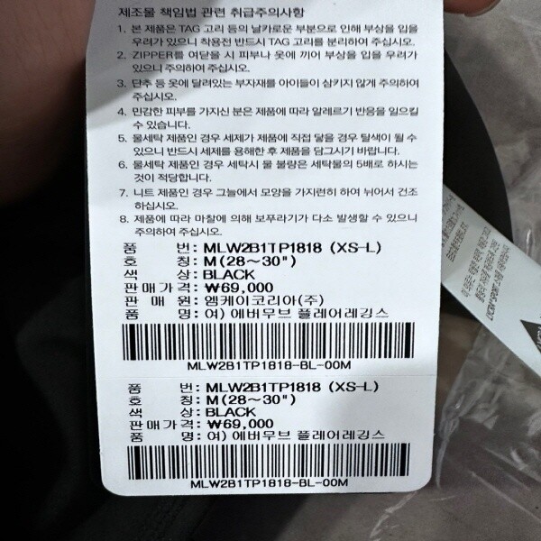 세탁방법 및 취급시 주의사항 : 상세 참조