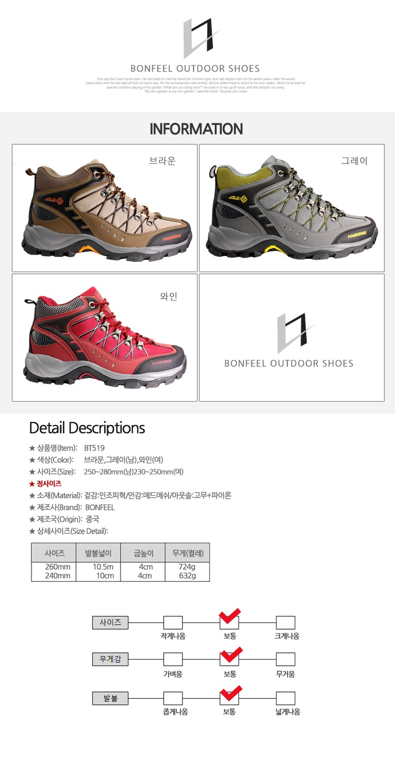본필 남성 여성 발편한 메쉬 경량 캐주얼 등산화 BT2B519