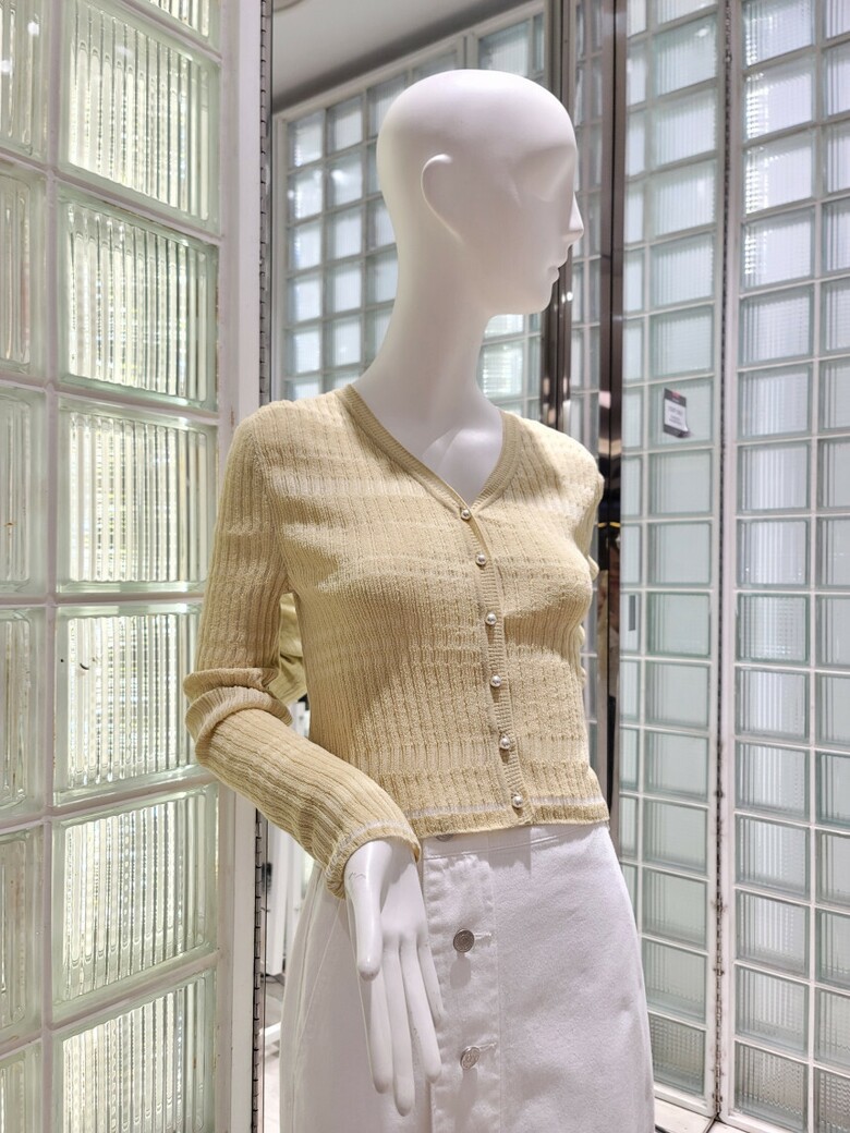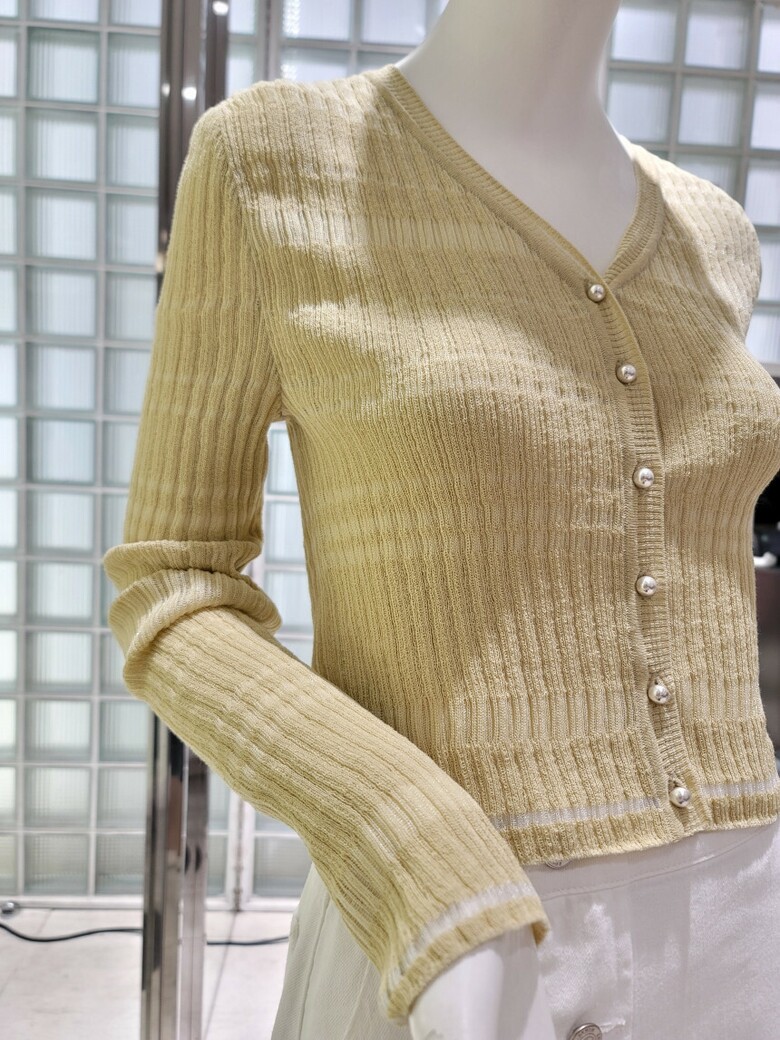 ZOOC 브이넥 단추 크롭 니트 가디건 Z232KSL014