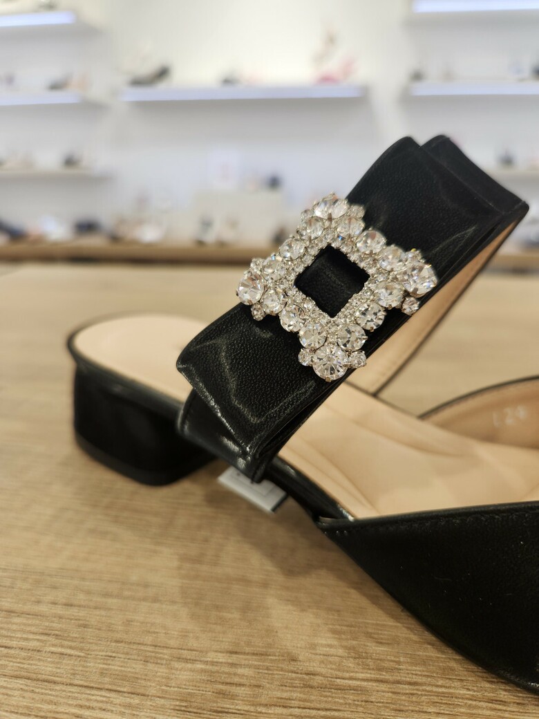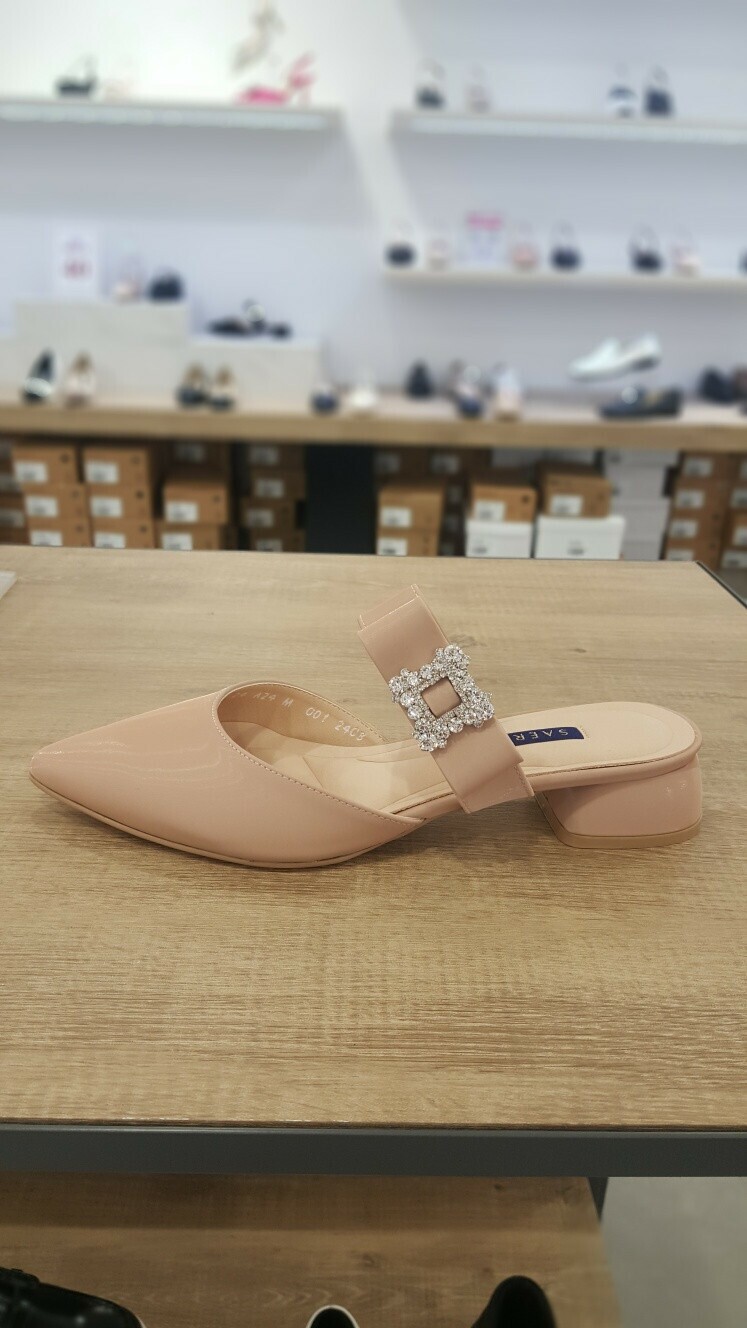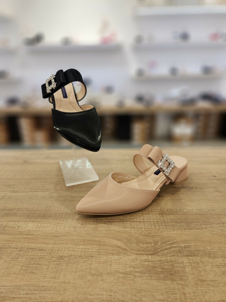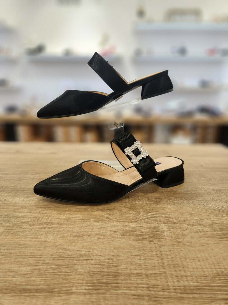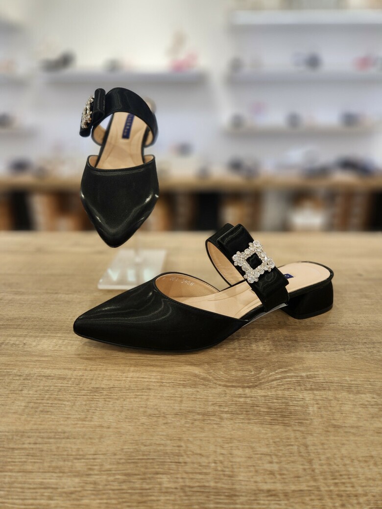 2024 여성 소가죽 보석스트랩 포인트토 세미 슬링백 구두 (3cm)