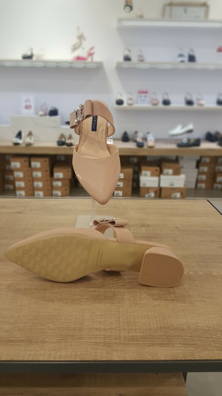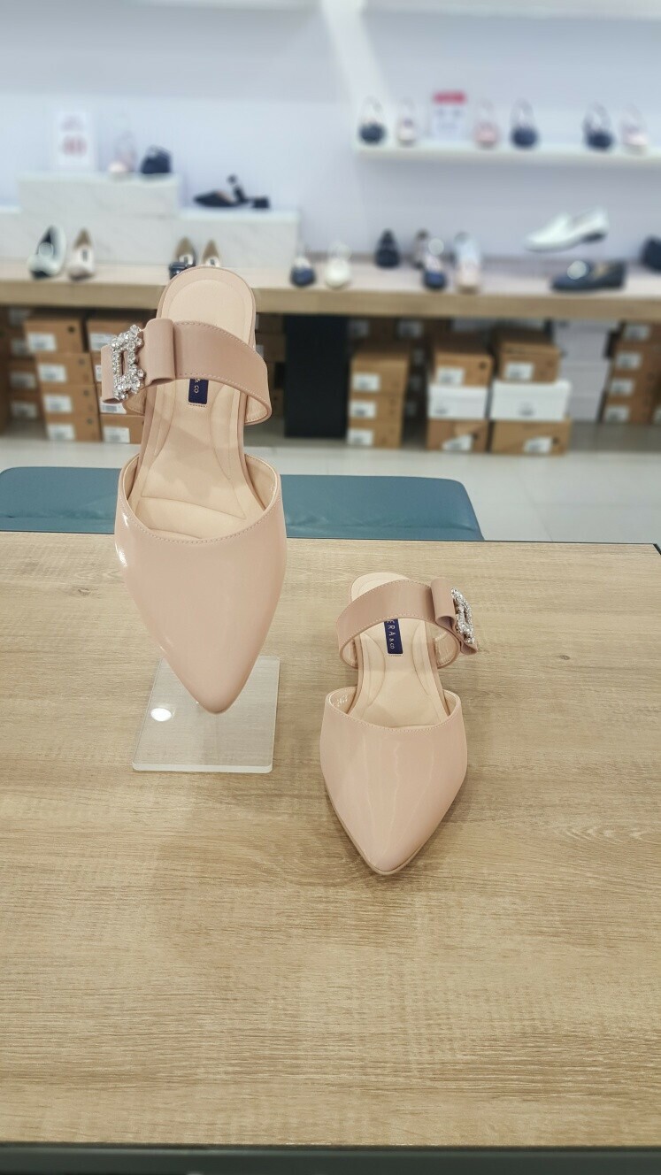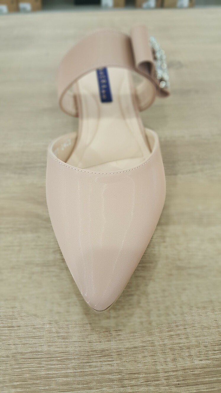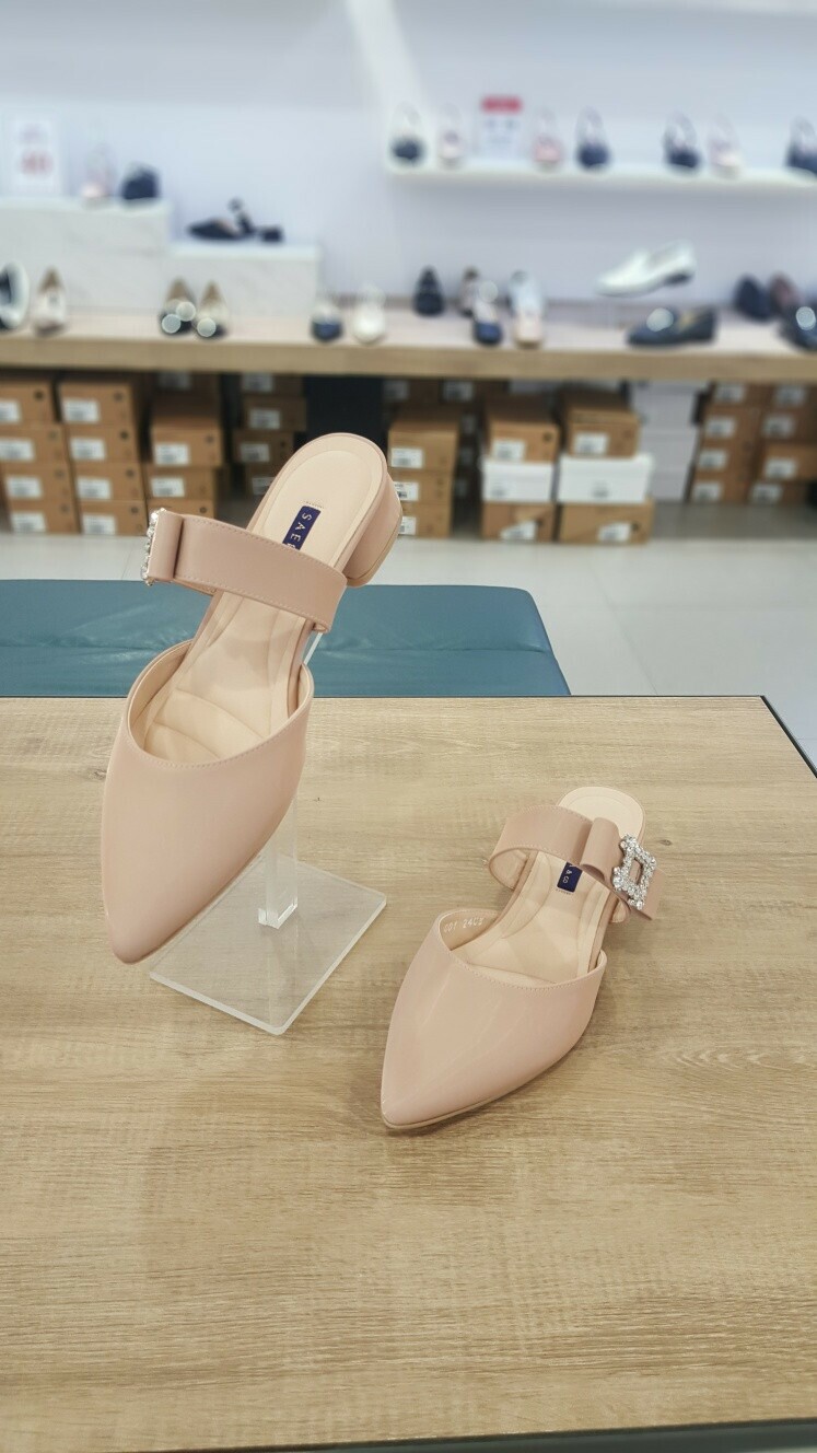 2024 여성 소가죽 보석스트랩 포인트토 세미 슬링백 구두 (3cm)