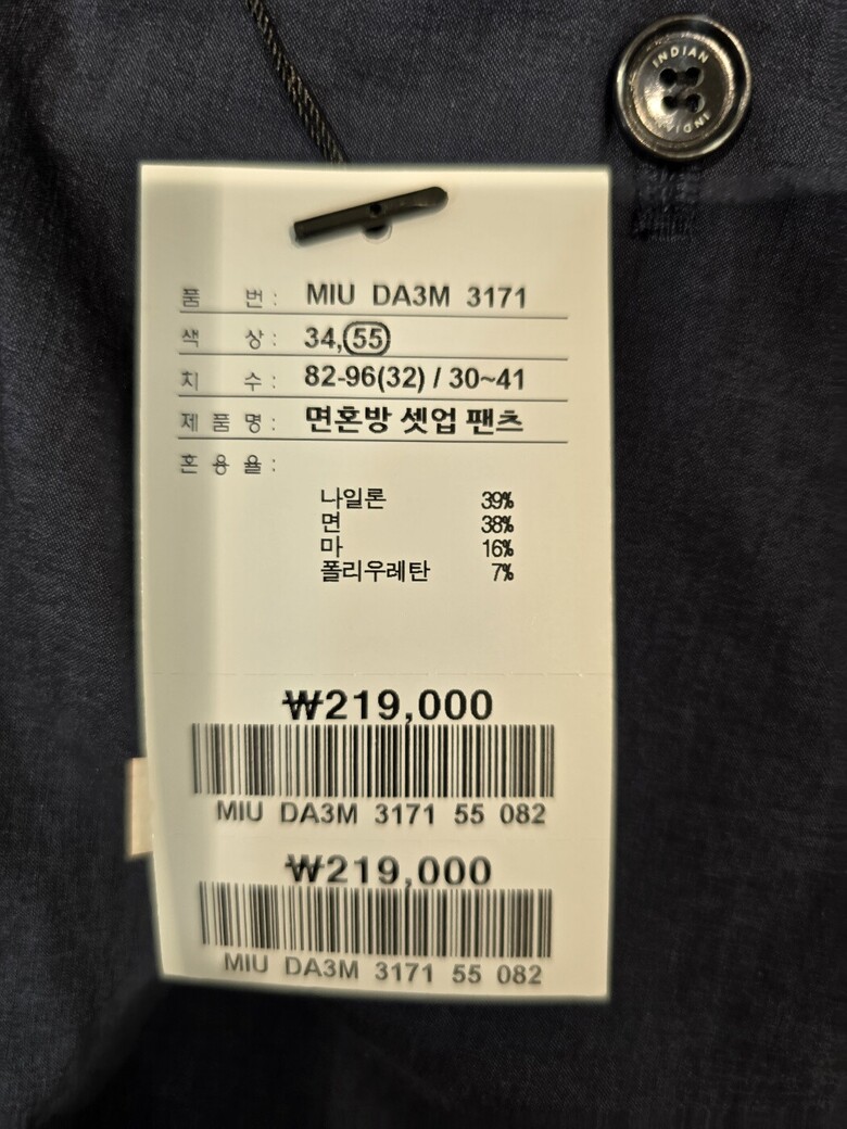 소재 : 나일론39% 면38% 마16% 폴리우레탄4%
