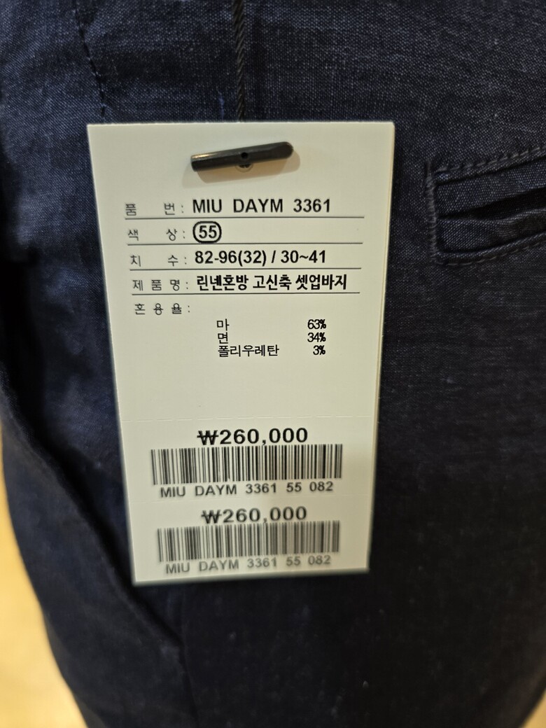 소재 : 마63% 면34% 폴리우레탄3%