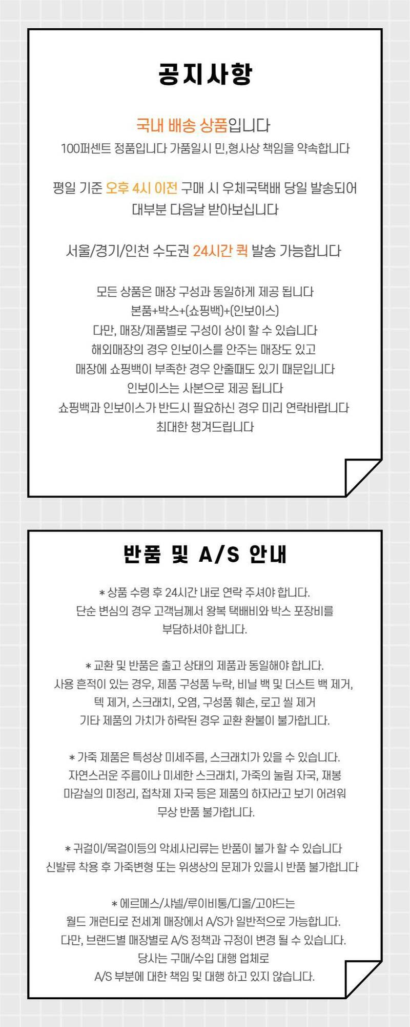 • 브랜드 박스로 포장된 상품은 해당 박스에 직접 테이핑, 송장을 부착한 경우 반품이 불가합니다.