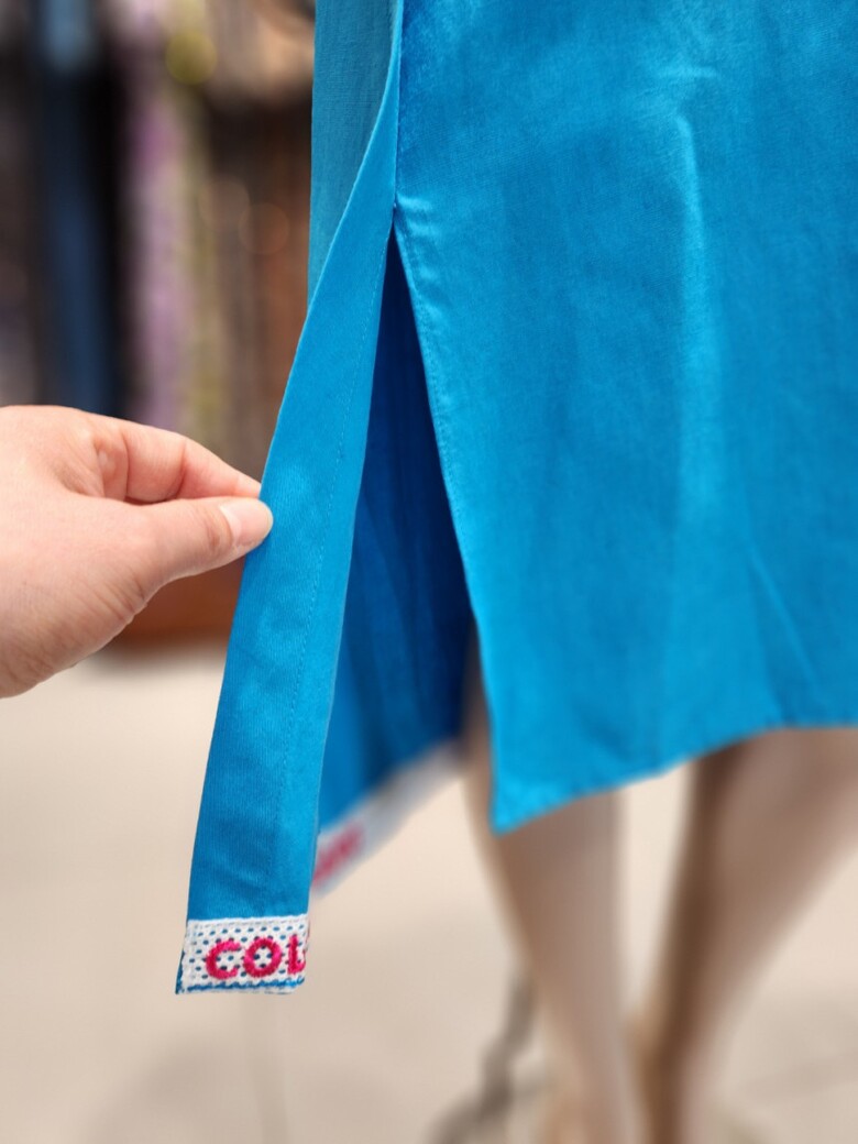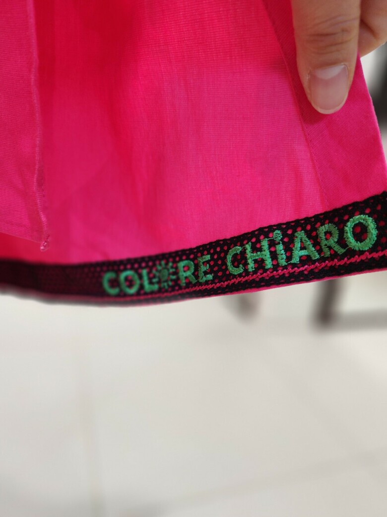 스커트 밑단부분에 자수레터링을 안쪽으로 처리하여