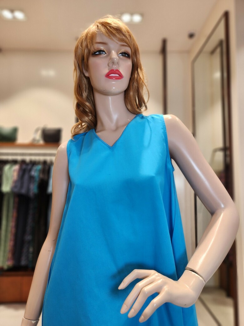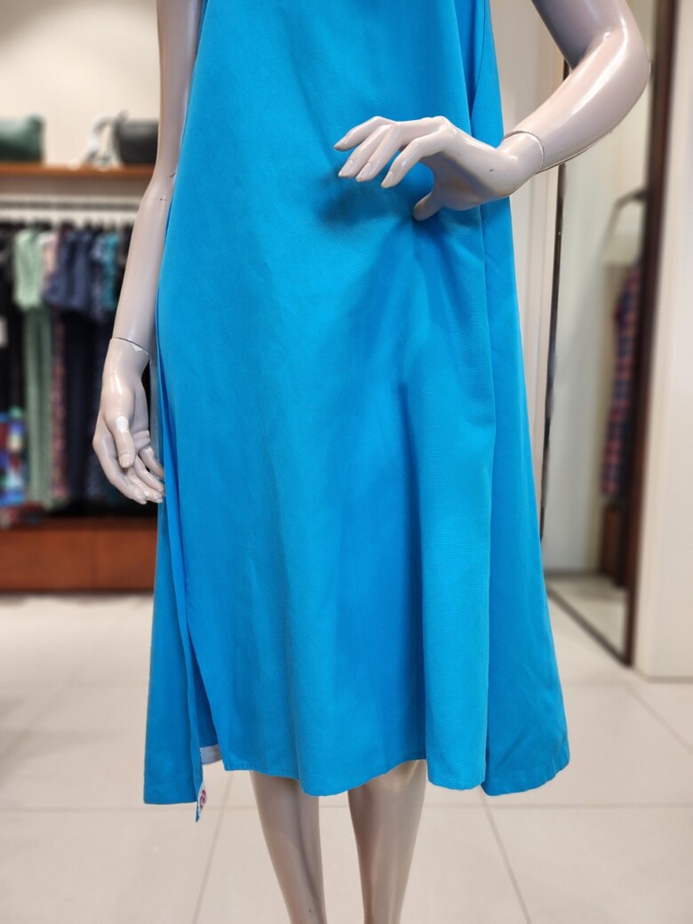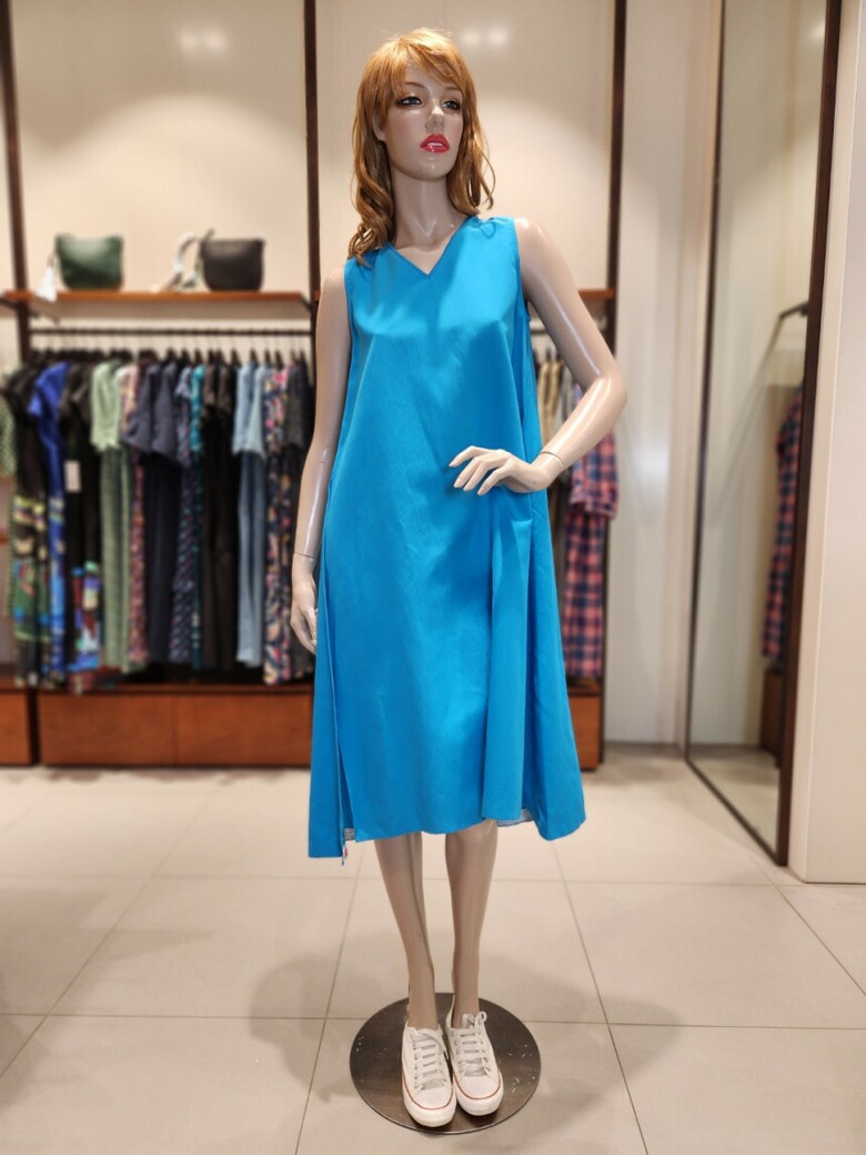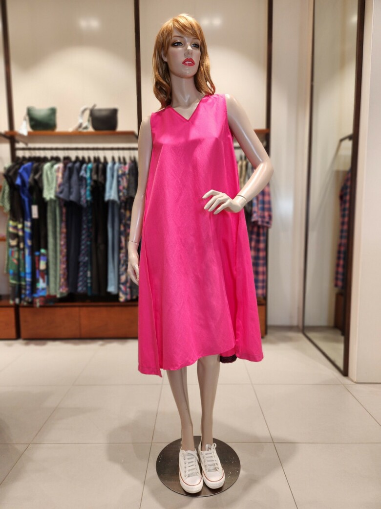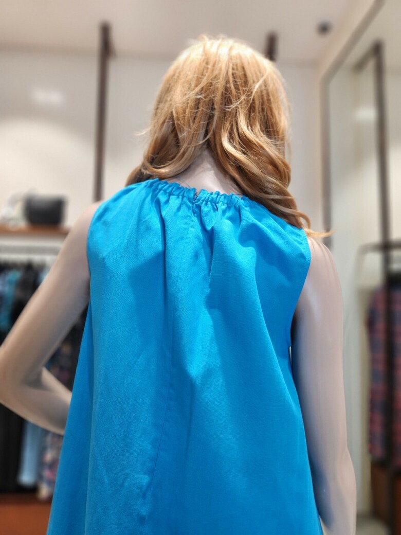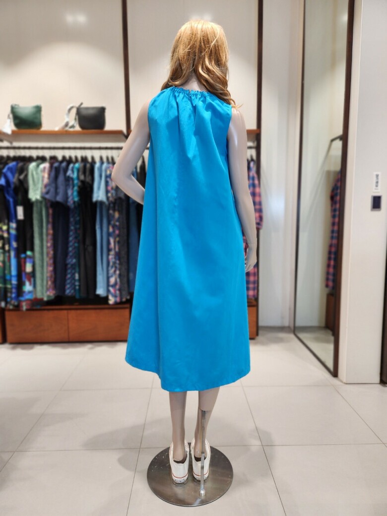 어깨선부타 자연스럽게 퍼지는 A라인의 민소매 원피스입니다