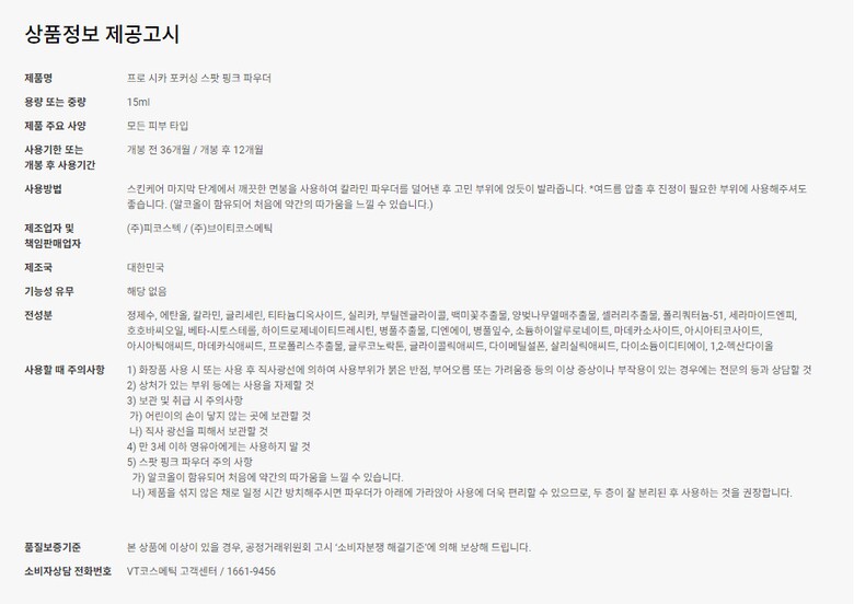 [VT코스메틱] 프로 시카 포커싱 스팟 핑크 파우더 15ml