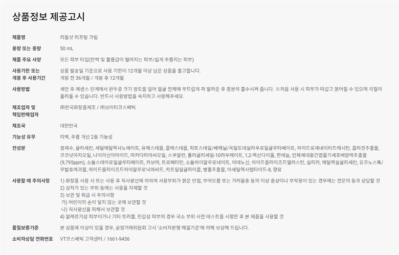 [VT코스메틱] 리들샷 리프팅 크림 50ml