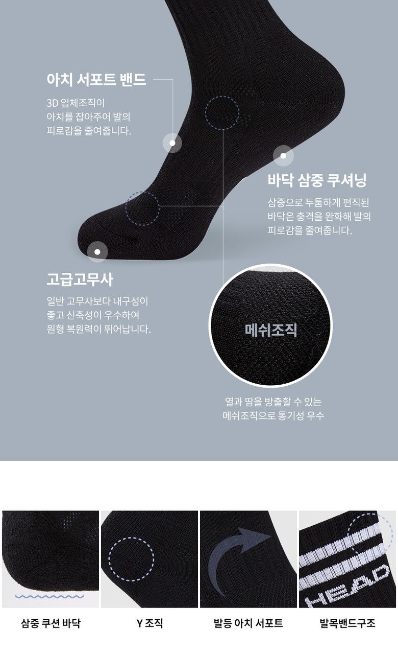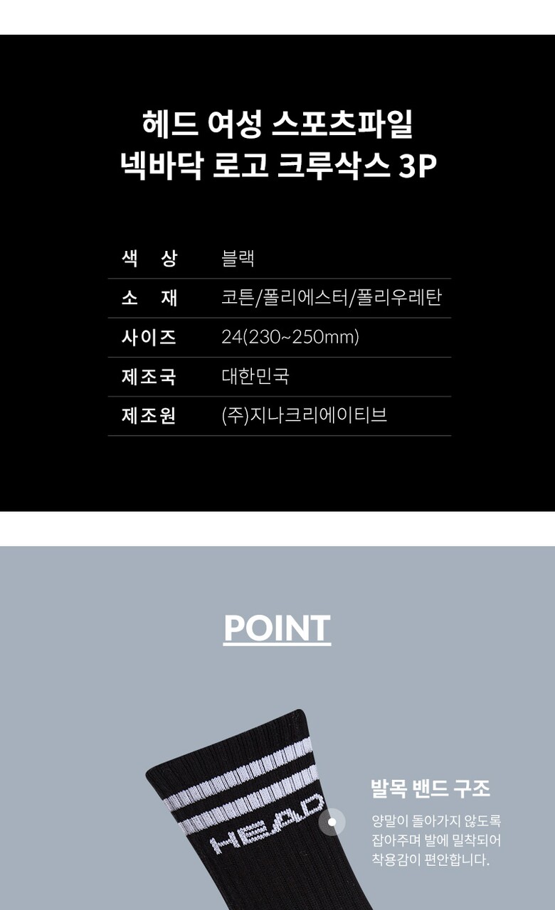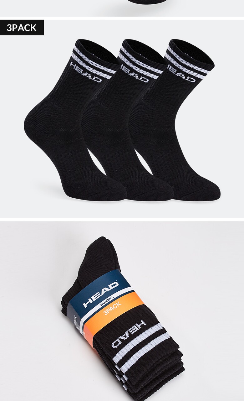 헤드 여성 스포츠파일 넥바닥 로고 크루삭스 3P_BK