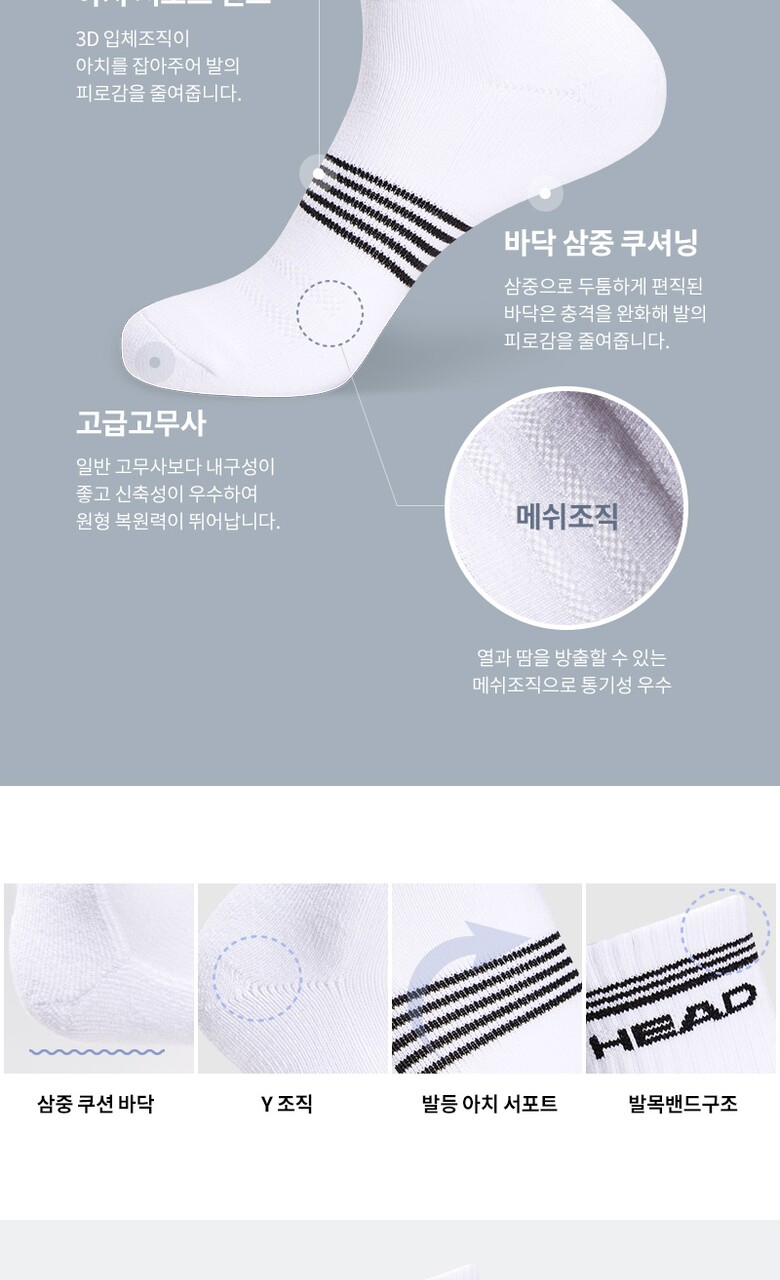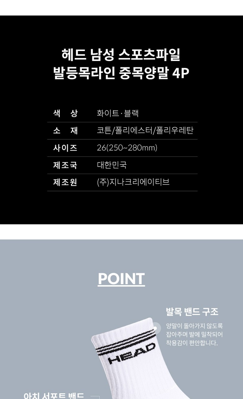 헤드 남성 스포츠파일 발등목라인 중목양말 4P_WH/BK