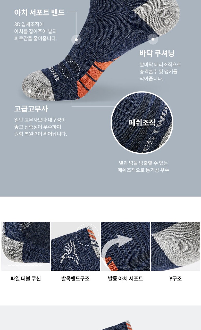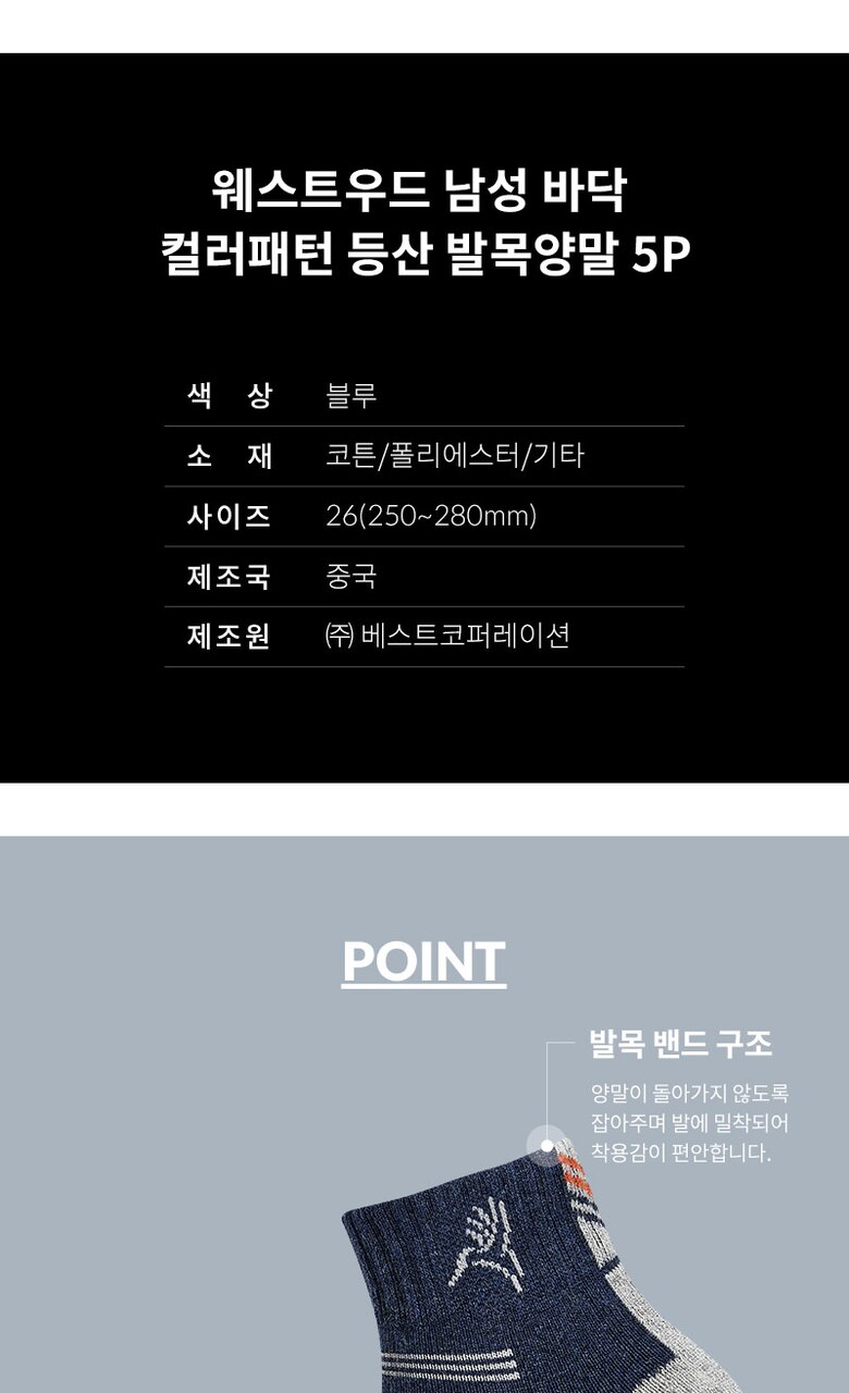 웨스트우드 남성 바닥 컬러패턴 등산 발목양말 5P_BL