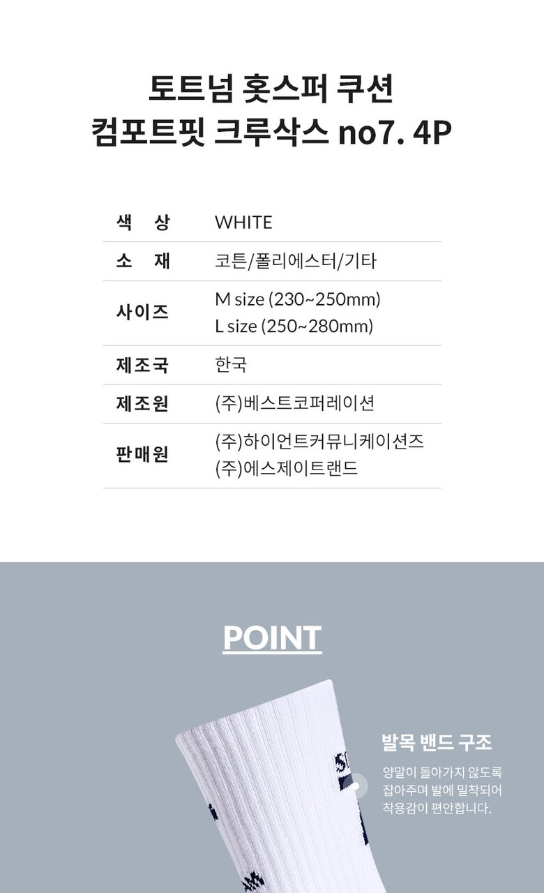 토트넘 쿠션 컴포트핏 크루삭스 no7. 4P_WH