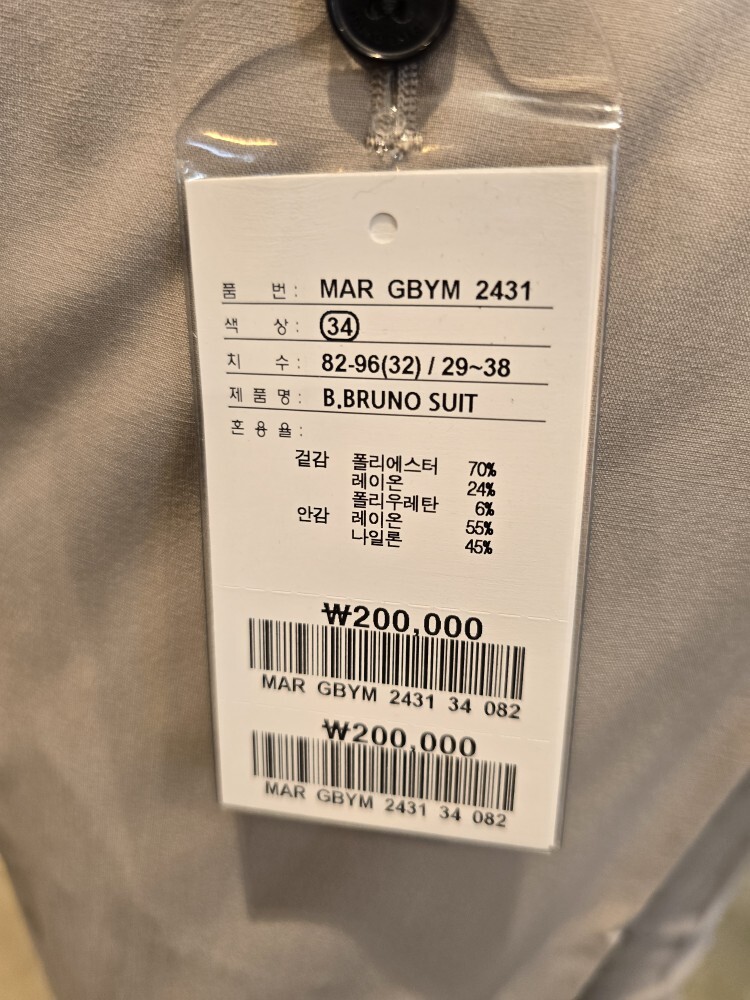 겉감:레이온 24%|*|폴리에스터 70%|*|폴리우레탄 6% / 안감:나일론 45%|*|레이온 55%