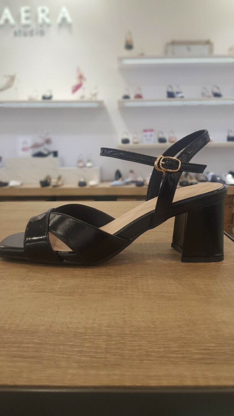 [세라] (2color) 블럭굽 6cm 컴포트 소가죽 스퀘어토 여성 발목 스트랩 샌들 c24s511