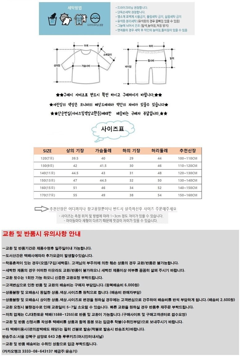 | 6. 세탁방법 및 취급시 주의사항 | 상세페이지 참조 |