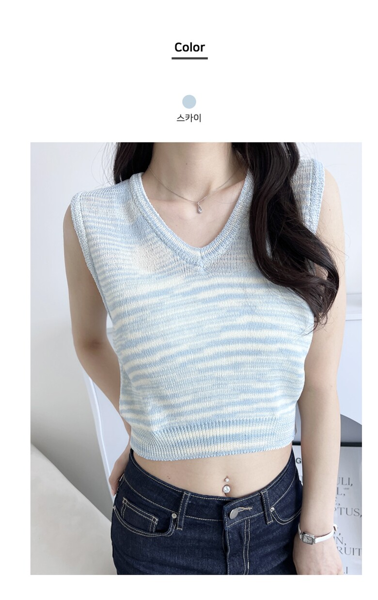 블레오 여성 여름 브이넥 크롭 시원한 데일리 니트 조끼
