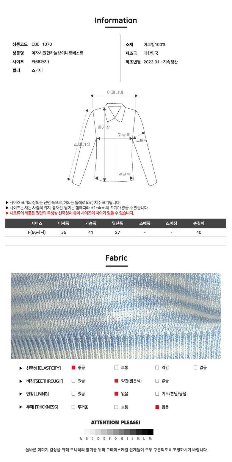 해당 상품은 / 블레오 여성 여름 브이넥 크롭 시원한 데일리 니트 조끼 / 구성의 상품입니다.