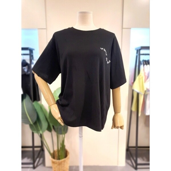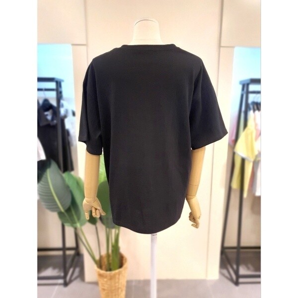 KKTSO506BK_물결 자수 라운드 반팔 티셔츠 블랙