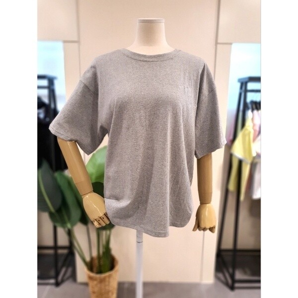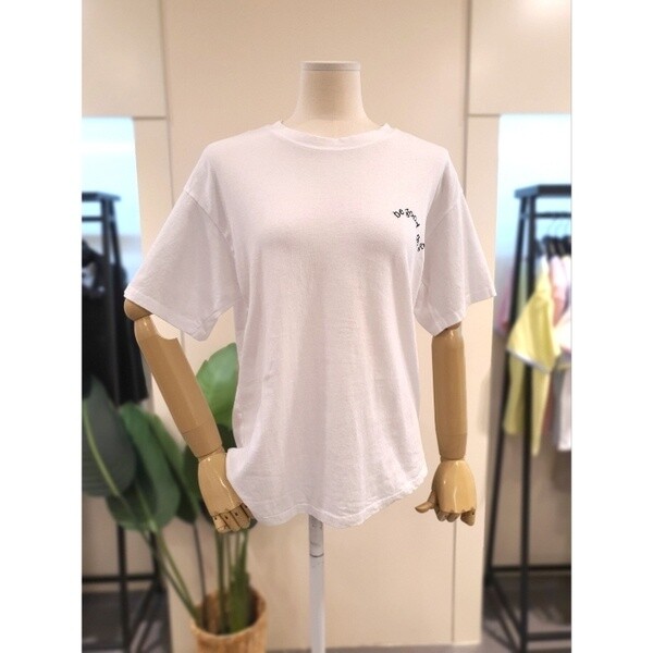 가슴 한 쪽에 물결 모양 자수가 들어간 기본 반팔티셔츠입니다.