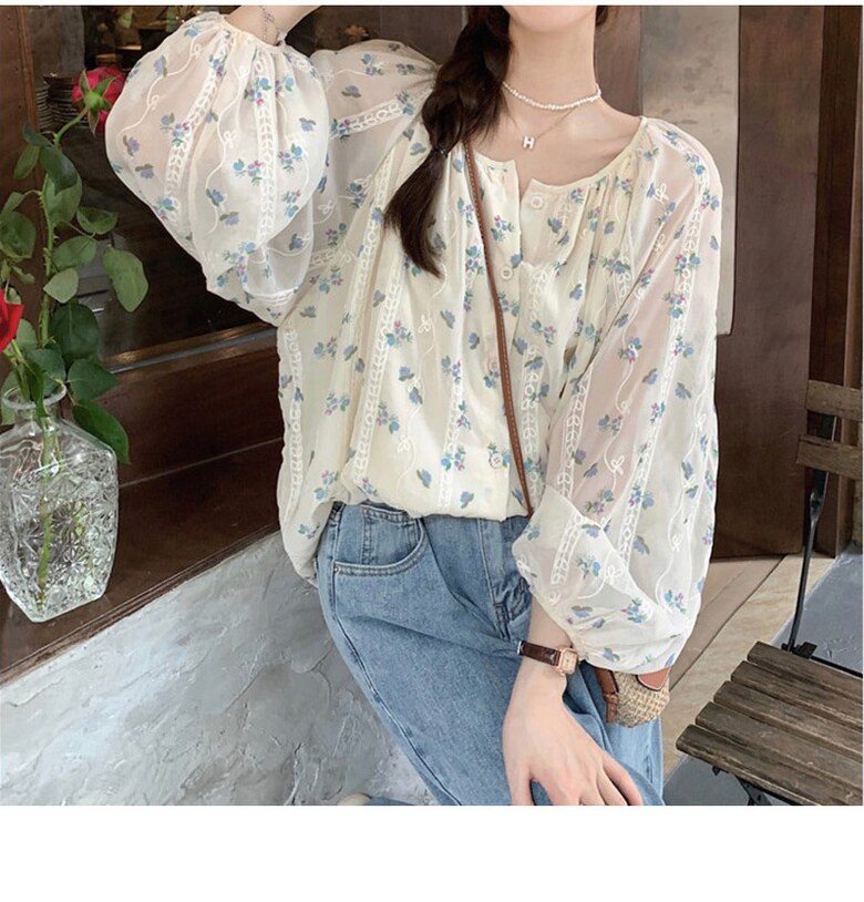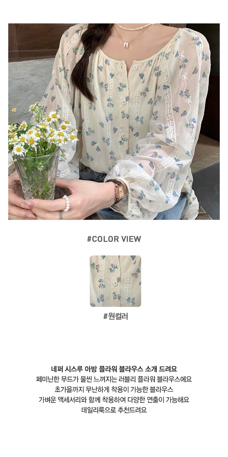 [~77까지]네퍼 시스루 아방 플라워 블라우스