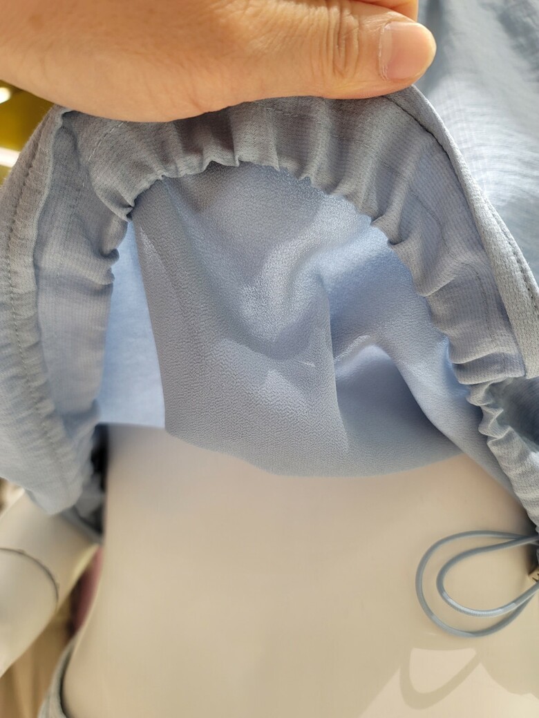 | 1. 제품 소재 (섬유의 조성 또는 혼용률을 백분율로 표시, 기능성인 경우 성적서 또는 허가서) | 겉감:나일론 77%, 레이온 23% / 안감:폴리에스테르 100% |