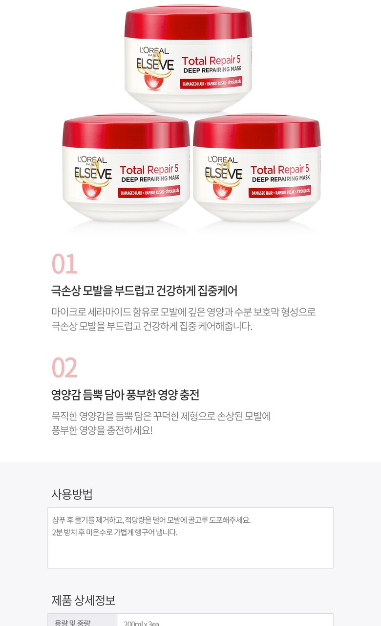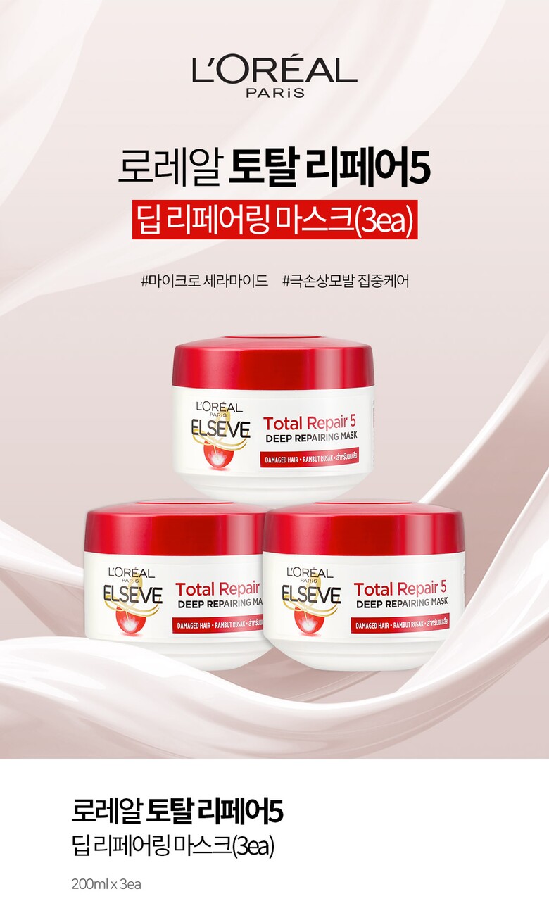 로레알 엘세브 토탈 리페어 5 딥리페어링 헤어 마스크 600ml(극손상용)