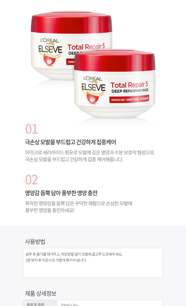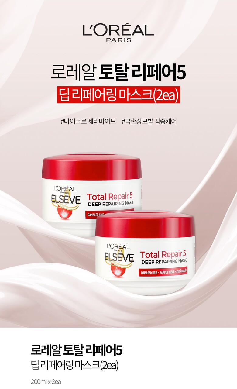 로레알 엘세브 토탈 리페어 5 딥리페어링 헤어 마스크 400ml(극손상용)