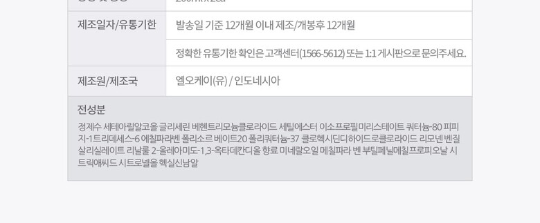 3. 제조연월과 사용기한 | 주문 시점으로부터 최근 1년 이내에 제조된 상품으로 배송/제조일로부터 36개월/개봉후 1년 이내 사용 |