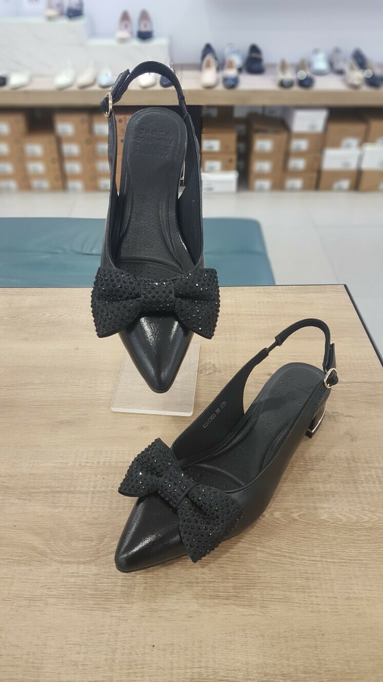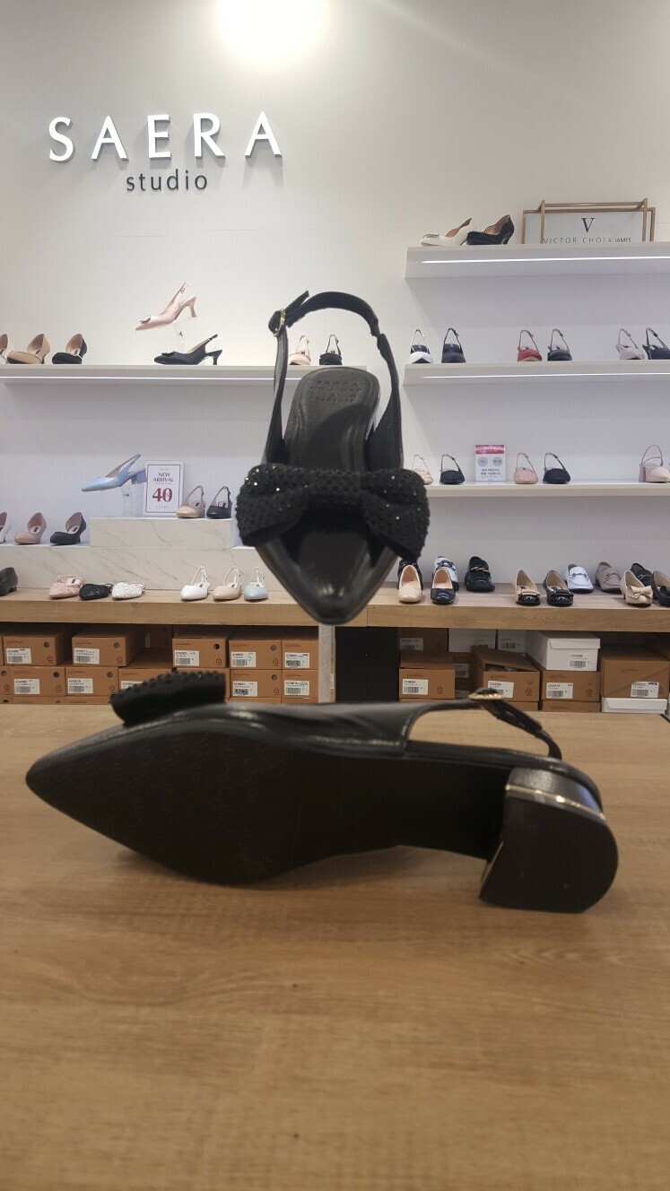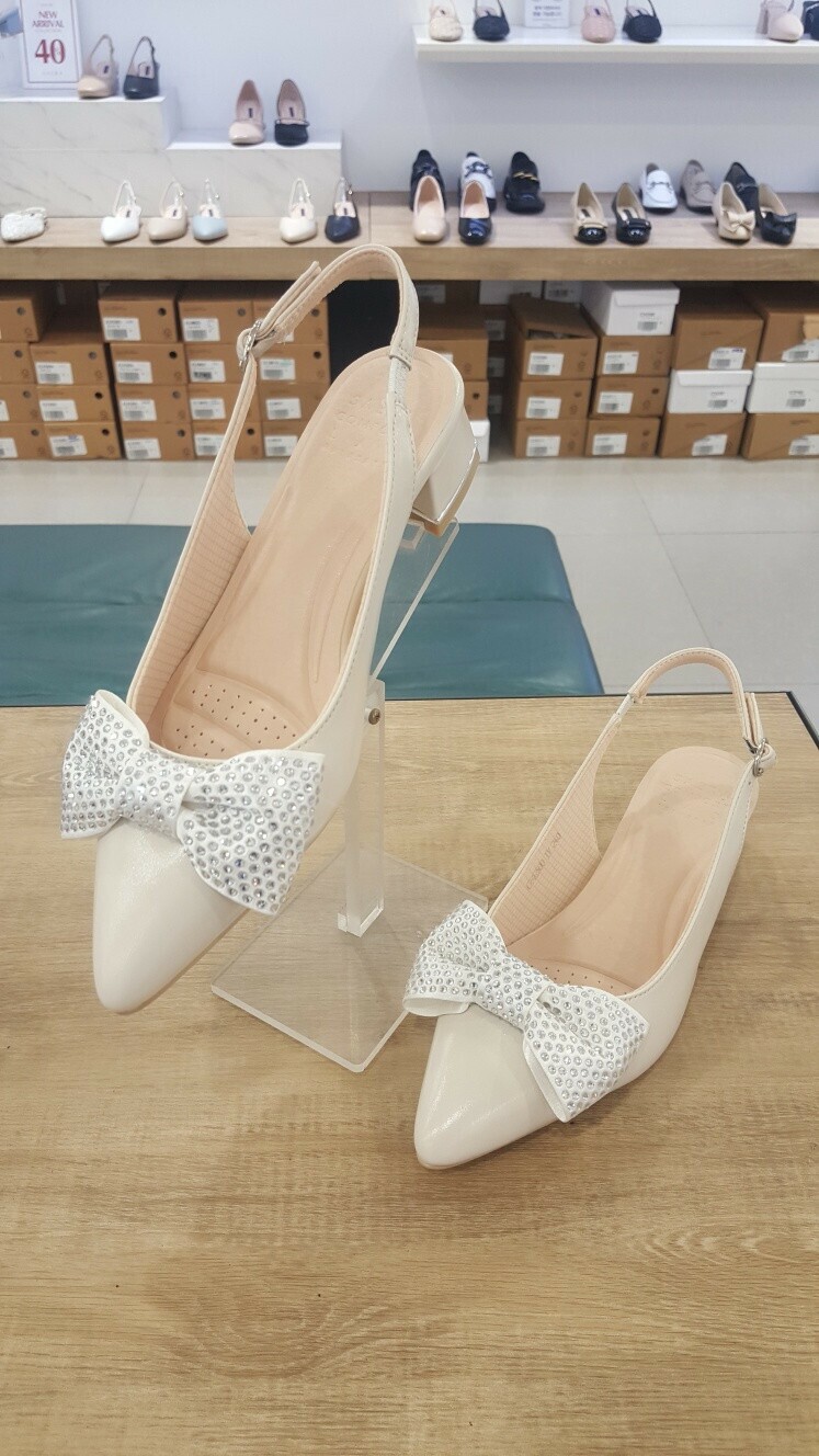 [세라] (2color) 여성 리본(큐빅) 슬링백 (4cm) C24G500