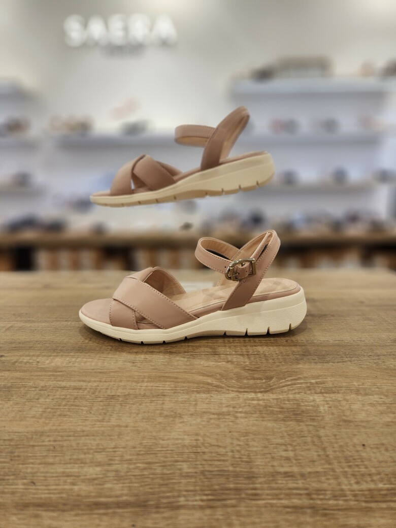 [세라] (2color) 경량 컴포트 웨지 통굽 4cm 소가죽 여성 쿠션 샌들 c24s500
