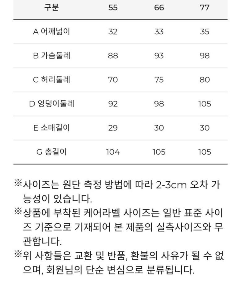 • 처음 배송된 상품상태와 다를 경우(세탁/착용 후 외출하신 경우) 반품이 불가합니다.