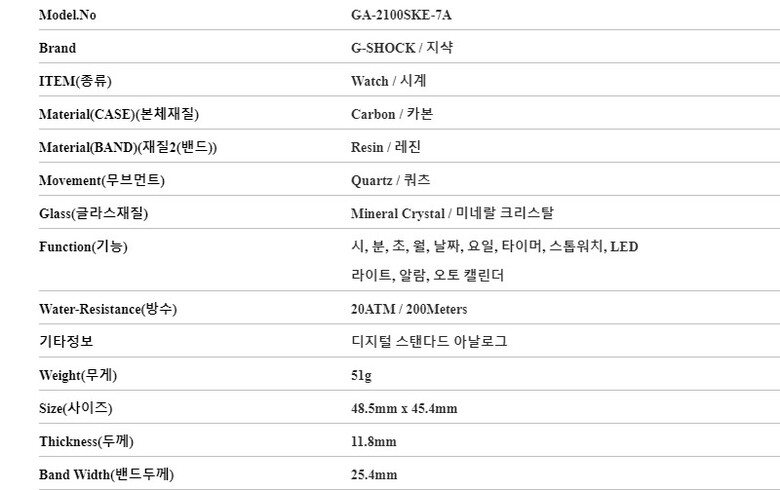 | 7-2. 시계 - 기능, 방수 등 | WATER RESISTANCE - 20ATM(200Meters) |