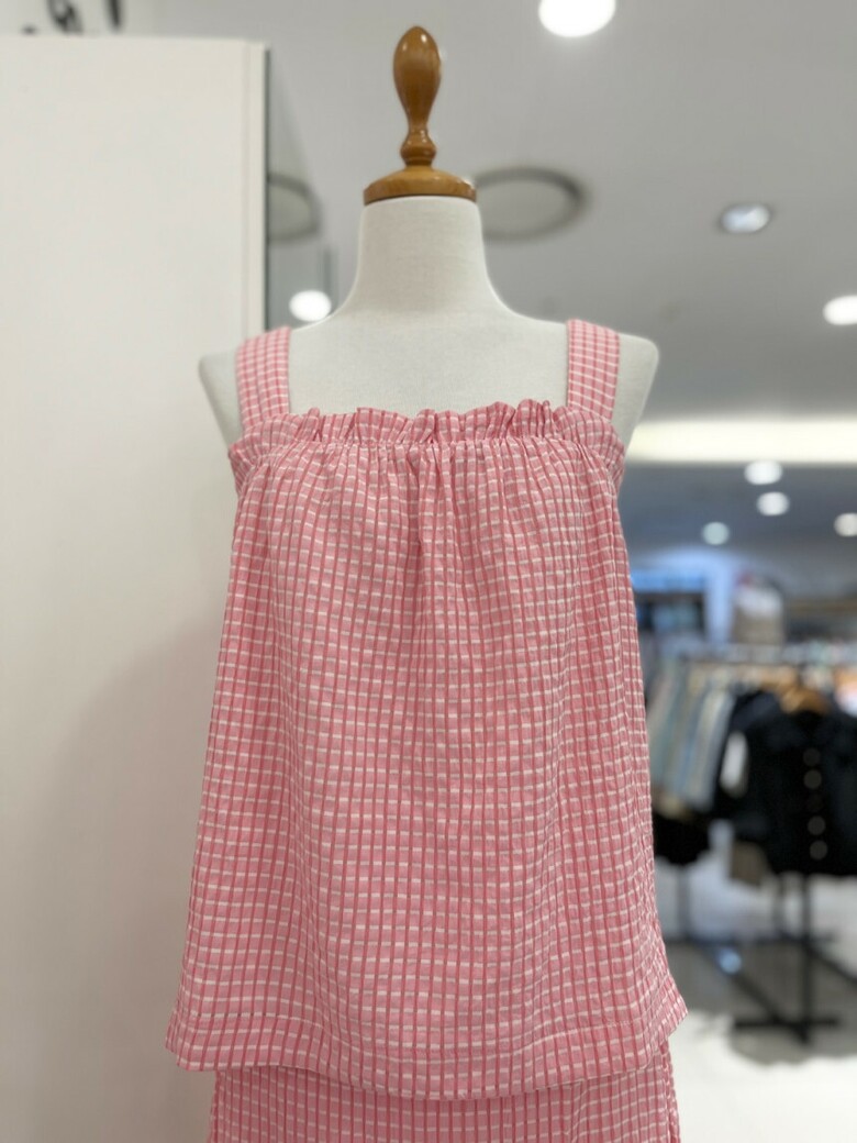 깅엄체크 나시 블라우스 (CJB-BL571W6)