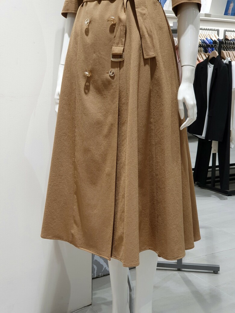 감각적인 더블 버튼 클로징 플레어 원피스입니다.
