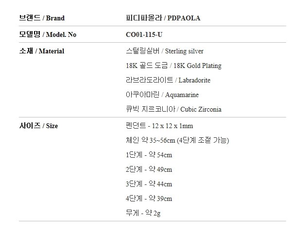 피디파올라 목걸이 CO01-115-U 이니셜 T 실버 여성목걸이 당일발송
