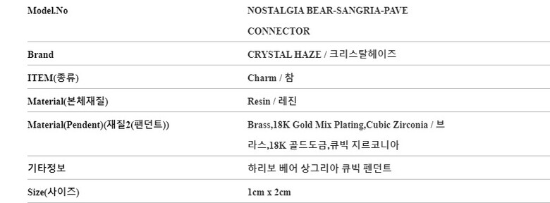 크리스탈헤이즈 노스텔지아 하리보 베어 상그리아 큐빅 펜던트 여성참 당일발송
