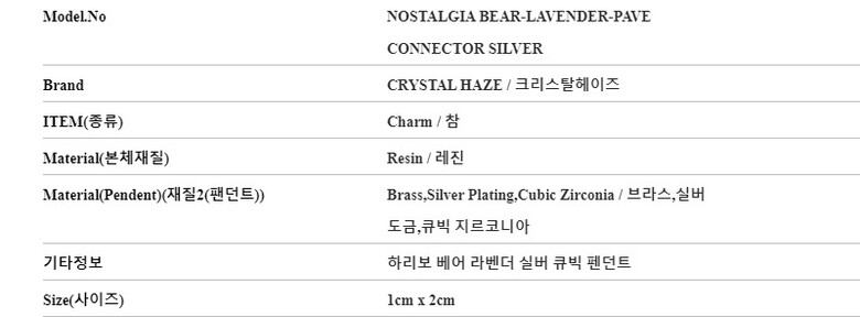 크리스탈헤이즈 노스텔지아 하리보 베어 라벤더 실버 큐빅 펜던트 여성참 당일발송