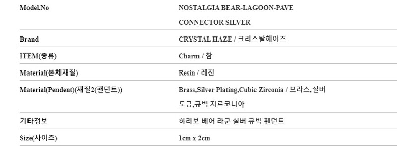 크리스탈헤이즈 노스텔지아 하리보 베어 라군 실버 큐빅 펜던트 여성참 당일발송