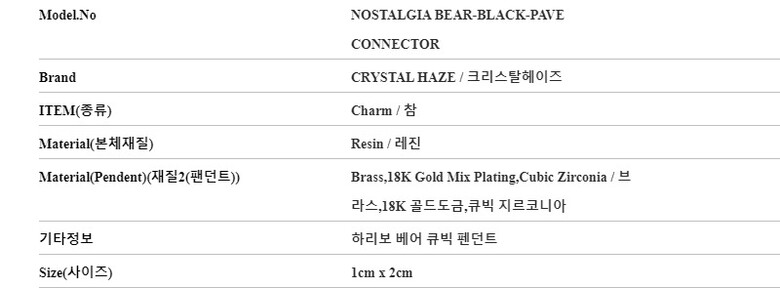 크리스탈헤이즈 하리보 NOSTALGIA BEAR-BLACK-PAVE CONNECTOR 노스텔지아 하리보 베어 블랙 큐빅 펜던트 레